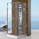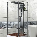 Закрытая кабина • двери распашные • гидромассаж • баня • тропический душ • электронное управление • 90x90x215 см