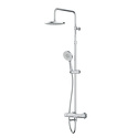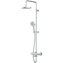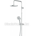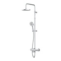 Устройство: душевая система • Смеситель: термостатический, от стены 176 мм • Ручной душ (душевая лейка): размер 120 мм, настройки 3 шт • Верхний душ (тропический): размер 228 мм, настройки 1 шт • Комплектация: ручной душ, верхний душ, смеситель, стойка, шланг, крепление ручного душа