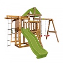 Комплектация- деревянный игровой домик;- тентовая крыша – 1 шт.;- качельная балка с «А» опорой – 1 шт.;- рукоход – 1 шт.;- качели «Лодочка» на канатах - 2 шт.;- балкон – 1 шт.;- турник – 1 шт.;- качели «Трапеция» – 1 шт.;- качели «Веревочная лестница – 1 шт.;- комбинированная лестница - 1 шт.;- горка пластиковая волновая Babygarden 2.2 м – 1 шт.;- набор крепежа – 1 шт.;- руководство по сборке и эксплуатации – 1 шт.