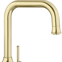 Назначение: кухонный • Конструкция: однорычажный • Монтаж: горизонтальный • Клапан: керамический • Материал: латунь, покрытие - латунь • Подводка: гибкая • Монтажные отверстия: 1 отверстие • Форма излива: традиционная • Душевая лейка в комплекте: нет • Аэратор: есть