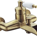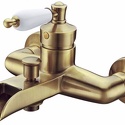 Назначение: ванна+душ • Конструкция: однорычажный • Монтаж: вертикальный • Материал: покрытие - бронза • Подводка: жесткая • Монтажные отверстия: 2 отверстия • Форма излива: каскадная • Душевая лейка в комплекте: нет