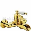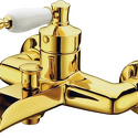 Назначение: ванна+душ • Конструкция: однорычажный • Монтаж: вертикальный • Материал: покрытие - золото • Подводка: жесткая • Монтажные отверстия: 2 отверстия • Форма излива: каскадная • Душевая лейка в комплекте: нет