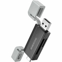 переносной • поддержка: SD • SDHC • SDXC • microSD • microSDHC • microSDXC • разъем подключения к устройству USB 2.0 Type-C/USB 2.0 Type-A • цвет черный/серый