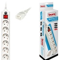 Производитель: Buro Модель: 600SH - Розеток: евро 6 шт - Длина кабеля: 3 м - Мощность подключения: 2200 Вт, 10 А - Защита: короткое, перепады Описание