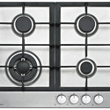Поверхность: варочная панель • Тип поверхности: газовая • Рабочая поверхность: нерж.сталь • Число конфорок: 4 • Установка: независимая • Газовые конфорки: всего - 4 (1 конфорка "Тройная корона") • Тип управления: механическое • Переключатели: поворотные • Электроподжиг: есть, автоматический • Размеры: 580x500x100 мм • Цвет: панель - нерж.сталь