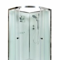Монтаж душевой кабины осуществляется без использования силикона. Латунный смеситель с керамическими картриджами и резьбовыми соединениями. 100% акриловый поддон с дренажными отводами, высотой 27 см со съемным экраном усиленный металлическим каркасом с антискользящим покрытием. Матовое безопасное закаленное сверхпрочное стекло толщиной 4 мм и антикальциевой обработкой. Душевая штанга с регулировкой лейки по высоте и ручная лейка с силиконовыми форсунками. диаметром 140 мм с функцией переключения режимов.