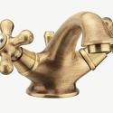 Назначение: для умывальника • Конструкция: двухрычажный • Монтаж: горизонтальный • Материал: латунь, покрытие - бронза • Монтажные отверстия: 1 отверстие • Форма излива: традиционная • Душевая лейка в комплекте: нет • Аэратор: есть • Донный клапан в комплекте: есть