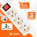 Розеток: евро 3 шт • Длина кабеля: 3 м • Мощность подключения: 3500 Вт, 16 А • Защита: короткое