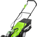 Двигатель: электрический, тип газонокосилки: колесная (несамоходная), ширина скашивания: 35 см, работа от аккумулятора, мульчирование, количество колес: четырехколесная