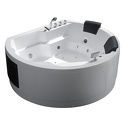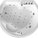 Материал: акрил • Расположение: отдельно стоящая • Форма: нестандартная • Количество мест: двухместная • Гидромассаж: есть, 11 форсунок • Аэромассаж: есть • Озонирование: есть • Подсветка: есть • Комфорт: подголовник • Смеситель в комплекте: есть • Размеры (ДxШxВ): 185x183x74 см