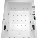 Материал: акрил • Расположение: отдельно стоящая • Форма: нестандартная • Количество мест: двухместная • Гидромассаж: есть, 11 форсунок • Аэромассаж: есть • Озонирование: есть • Подсветка: есть • Комфорт: подголовник • Смеситель в комплекте: есть • Размеры (ДxШxВ): 185x183x74 см