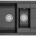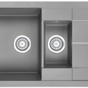 Форма чаши: прямоугольная • Материал: гранит • Количество чаш: 1 основная, 1 дополнительная • Установка: врезная • Крыло: есть • Глубина чаши: 19 см • Измельчитель пищевых отходов: нет • Размеры: 80x50 • Мотажное отверстие: 80x50 • Диаметр сливного отверстия: 3 "