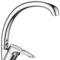 Назначение: кухонный • Конструкция: однорычажный • Монтаж: горизонтальный • Материал: латунь, покрытие - хром • Монтажные отверстия: 1 отверстие • Форма излива: традиционная • Душевая лейка в комплекте: нет • Донный клапан в комплекте: есть