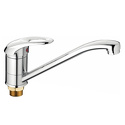 Назначение: кухонный • Конструкция: однорычажный • Монтаж: горизонтальный • Материал: латунь, покрытие - хром • Монтажные отверстия: 1 отверстие • Форма излива: традиционная • Душевая лейка в комплекте: нет • Донный клапан в комплекте: есть