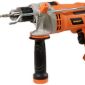 Особенности ударной дрели ДУЭ-750ЭР/13М: Новая дрель предназначена для замены в программе электроинструментов «энкор» дрели ДУЭ-750ЭР/13 (артикул 50080) Модифицированный современный инструмент с увеличенным ресурсом и усиленными металлическими корпусными элементами Современный дизайн корпусных деталей, эргономичная форма основной и дополнительной рукоятки Корпус редуктора из алюминиевого литья под давлением Регулировка частоты вращения нажатием на выключатель Реверс (переключатель направления вращения