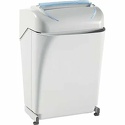 Для офиса • уровень секретности 4 • разовая загрузка 12 листов • уничтожает скрепки • пластиковые карты • емкость корзины 40 л