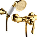 Назначение: душ • Конструкция: однорычажный • Монтаж: вертикальный • Клапан: керамический • Материал: покрытие - золото • Подводка: жесткая • Монтажные отверстия: 2 отверстия • Душевая лейка в комплекте: есть • Держатель для душевой лейки: настенный держатель • Эксцентрики в комплекте: есть • Донный клапан в комплекте: есть