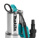 Давно мечтаете купить многоыункциональный погружной насос, чтобы вовремя убирать воду из подвала или бассейна? Приобретайте модель Makita PF0610. Этот насос поможет Вам везде: поливать огород или сад прямо из открытых водоемов, откачает воду из любого подтопленного помещения, дренажной системы или канавы. Функциональность Двигатель этого насоса работает на мощности 550 Вт. Подобное оборудование качает загрязненную воду с твердыми элементами, величина которых может достигать диаметра 35 мм. С максимальной глубины погружения может осуществлять подъем жидкости на высоту до 7 м. Производительность агрегата за минуту -180 литров. Преимущества Достаточно длинный электрошнур (10 м) без трудностей позволяет осуществить свободное размещение в любом месте. Оригинальный корпус этой модели сделан из нержавеющей стали. Очень важно наличие уплотнения в двигателе — это увеличивает надежность и строк эксплуатации. Такая конструкция агрегата предупреждает повреждение внутреннего механизма при недолгом отсутствии рабочей жидкости. В случае критического снижения воды аппарат отключается сам автоматически в результате давления поплавка с регулируемым рычагом. Устроена современная автоматическая система служит для защиты от возможных перегрузок.