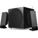 Звуковая схема: 2.1 • Суммарная мощность (RMS): 38 Вт • Частотный диапазон: 40 Гц - 20 КГц • Воспроизведение с USB-носителей: есть • Вспроизведение с карт памяти: SD • Линейный вход: стерео (mini-jack 3.5мм) • Расположение элементов управления: боковая панель • Количество полос фронтальных колонок: 1 • Встроенный FM-тюнер: есть • Отношение сигнал/шум: 80 дБ • Питание: от сети