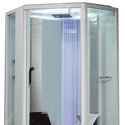 закрытая кабина • угловая • двери распашные • гидромассаж • баня • тропический душ • электронное управление • вентилятор • 130x130x220 см