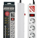 Розеток: евро 5 шт • Длина кабеля: 1.9 м • Мощность подключения: 2200 Вт, 10 А • Защита: короткое, импульсные