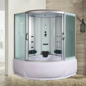 Закрытая кабина • комбинированная • угловая • двери раздвижные • гидромассаж • баня • тропический душ • электронное управление • вентилятор • 150x150x220 см