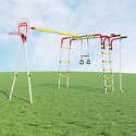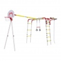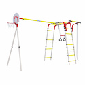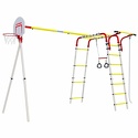 В комплектегимнастические кольца, лестница, трапеция, баскетбольное кольцо, канат, рукоход, качели