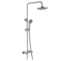 Устройство: душевая система • Смеситель: двухвентильный • Верхний душ (тропический): размер 200 мм, настройки 1 шт • Комплектация: верхний душ, смеситель, стойка