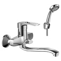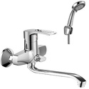 S-образные эксцентрики - Есть, Термостат - Нет, Покрытие - Хром, Присоединительный размер - 1\2", Тип - Однозахватный, Назначение - Для ванны и душа, Донный клапан - Нет, Количество монтажных отверстий - 2, Аэратор - Есть, Встраиваемый - Нет, Поворотный излив - Да, Материал корпуса - Латунь, Форма излива - Традиционная, Цвет - Серебристый, Глубина - 36.9, Тип подводки - Жесткая, Ширина - 21.9, Длина излива - 369, Комплектация - Держатель душевой лейки, душевой шланг, ручной душ