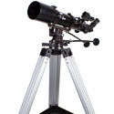 Компактный ахроматический рефрактор на азимутальной монтировке. Оптика с полным многослойным просветлением формирует четкую и резкую картинку. Искатель с красной точкой позволяет быстро найти любой объект. В комплект входят окуляры и диагональное зеркало. Монтировка AZ3 отличается простым и удобным управлением.