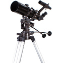 Короткофокусный ахроматический рефрактор с 80-миллиметровым объективом. На линзы нанесено полное многослойное просветление. Телескоп подходит и для астрономических наблюдений, и для изучения объектов дальнего космоса. Азимутальная монтировка снабжена механизмами тонких движений по обеим осям.