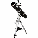 Рефлектор Ньютона с параболическим главным зеркалом. Эта модель подходит и для визуальных наблюдений, и для астрофотографии. Апертура – 150 мм. В комплект входят окуляры 25 мм и 10 мм. Экваториальная монтировка немецкого типа EQ3-2 оснащена механизмами тонких движений. Высота треноги регулируется.