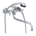 Материал ручки: цинк. Резиновый шланг в оплётке из нержавеющей стали. Излив: стальной, S-образный, поворотный. Лейка душевая: 1-функциональная, пластик. Монтажная группа для вертикального крепления: эксцентрики — пара (анодированная сталь), отражатели — пара (нержавеющая сталь).