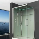 Закрытая кабина, полностенная, левосторонняя, двери раздвижные, материал поддона: акрил, материал стенок: стекло, турецкая баня, тропический душ, вертикальный гидромассаж, габариты (ШхВхД): 90x220x120 см