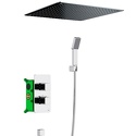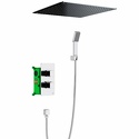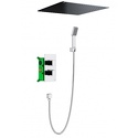 Устройство: душевая система • Смеситель: термостатический • Ручная лейка: настройки 1 шт • Верхний душ: размер 500 мм, настройки 1 шт • Комплектация: ручной душ, смеситель, шланг, крепление ручного душа