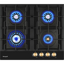 газовая на 4 конфорки • закаленное стекло • мощность: 10500 Вт • газ-контроль • решетки: чугун • независимая установка • размеры (ШхГ): 60x51 см